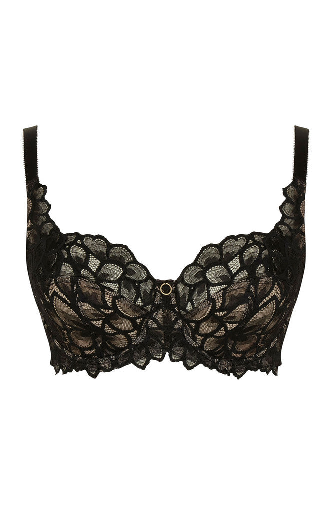 Stretch floral lace with sophisticated gold ring detailing are just some of the features that make this fuller bust friendly bra a must-have.