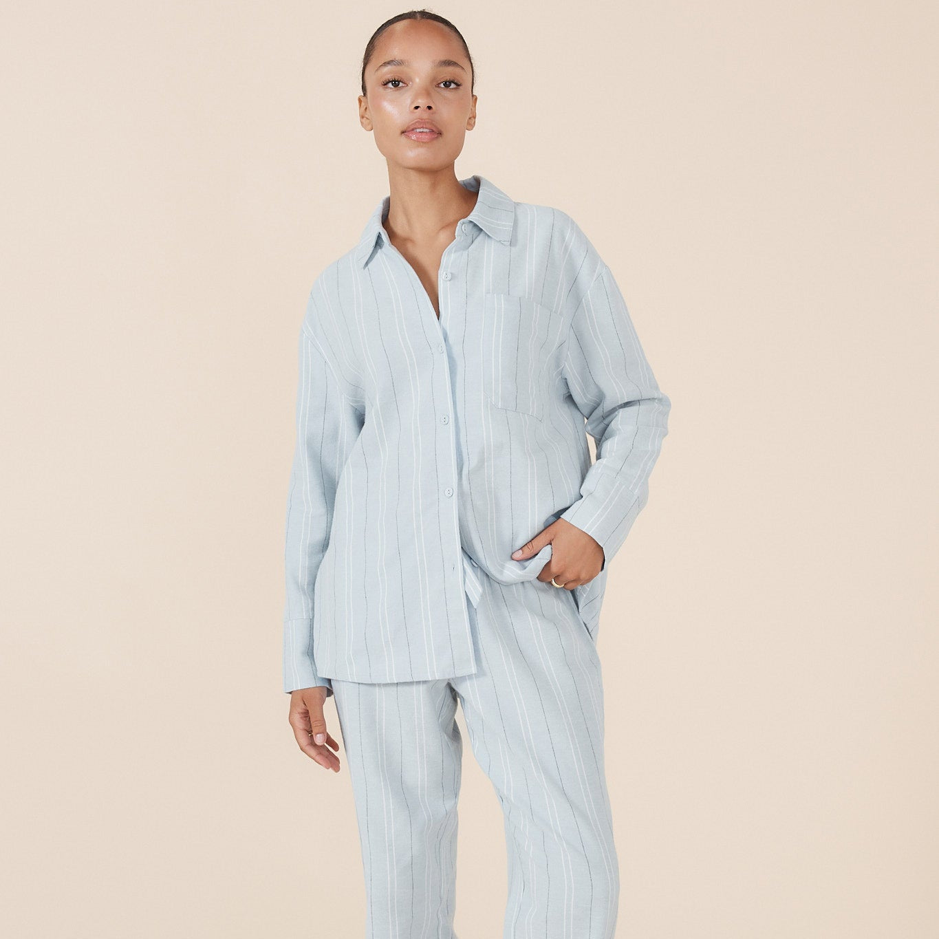 Amelie Brushed Cotton PJ Set - Blue Stripe