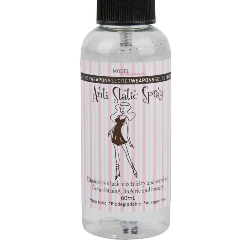 Anti Static Spray for clothing in classic scent, eliminates static electricity and wrinkles from clothing, lingerie and hosiery.