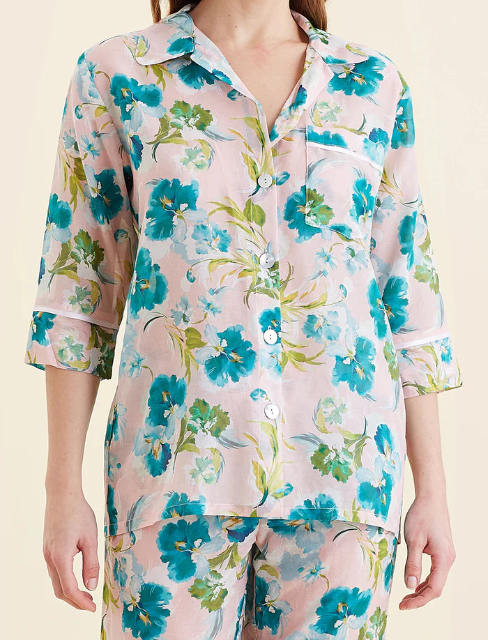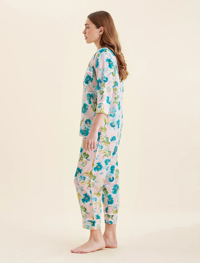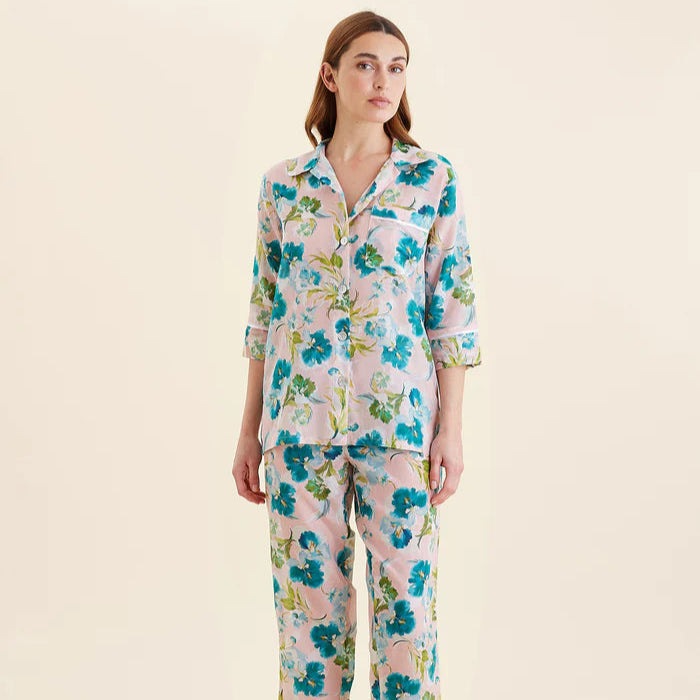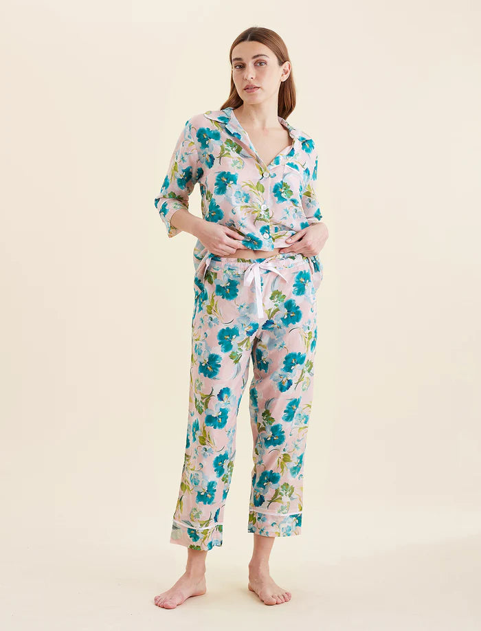 Wrap yourself in effortless elegance with the Audrey Floral Crop PJ Set. Crafted from a luxurious blend of cotton silk, this set combines softness and breathability with a silky smooth finish that feels like a dream against your skin.