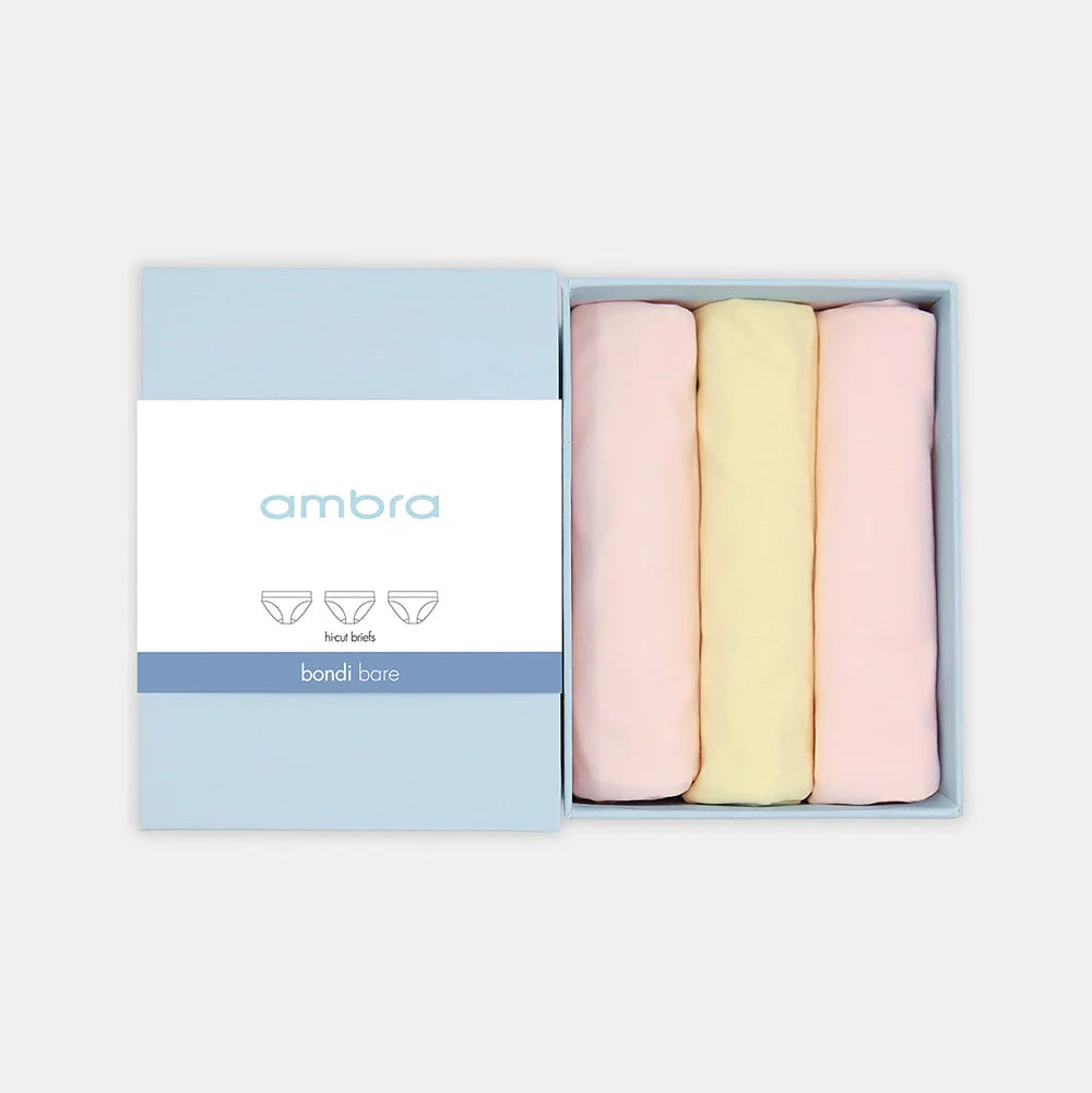 Elevate your essentials with our curated Bondi Bare Gift Box. Thoughtfully designed and packaged up in a premium gift box, this pack includes 3 Bondi Bare Hi Cut Briefs, crafted with premium yarns that stretch and move with you.
