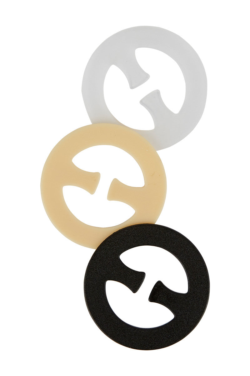 Bra Clips are 43mm in diameter and come in a three pack of clear, black and barely-there-nude to suit any outfit!