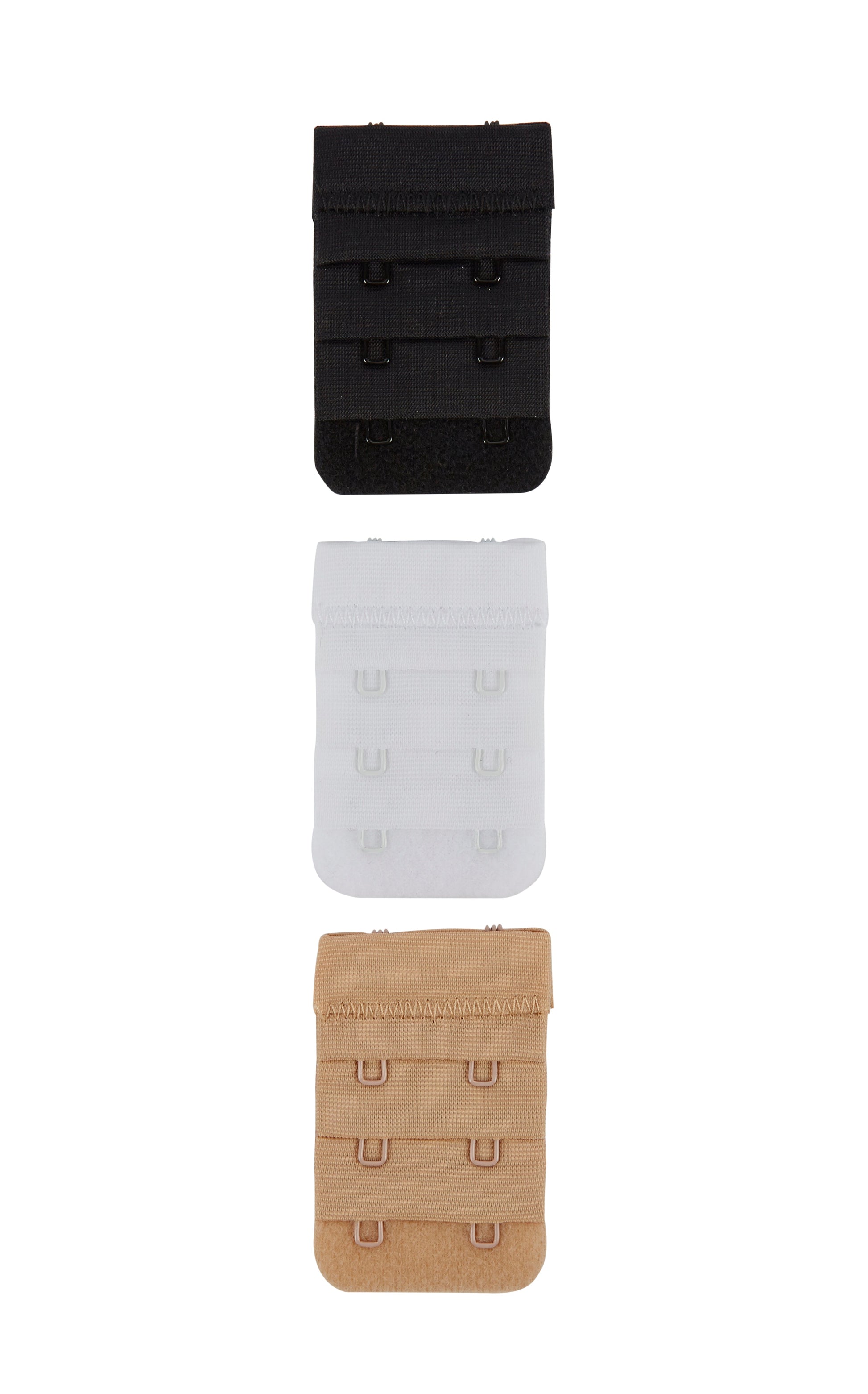 3 Pack Bra Extenders contain 3 colours - beige, black and white in 2 Hook, 3 Hook or 4 Hook options.