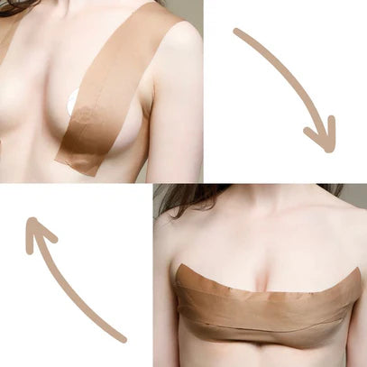 Breast tape- Is superior for supporting all size breasts and can be cut into any desired length or shape you need to effectively cover, lift and support. Our tape is particularly effective for heavier busts when worn with structured outfits, enhancing support and stability.