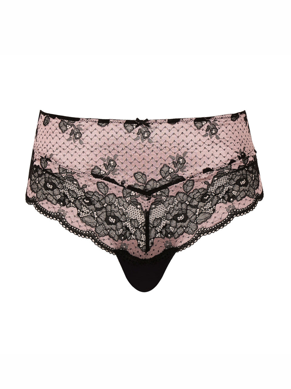Introducing our exquisite new Clara deep brief shape, a perfect pairing of sophistication and comfort. This stunning piece combines a captivating pink with delicate black lace, creating a timeless and elegant look that complements any wardrobe.