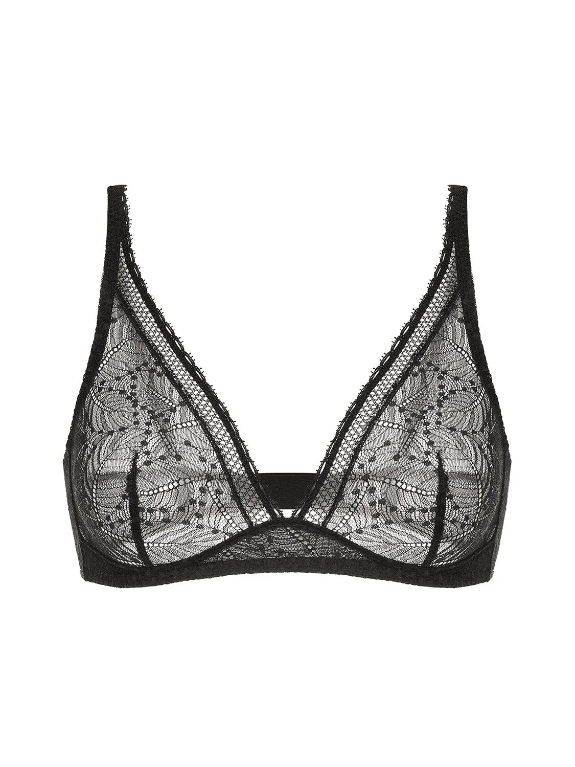 Everyday elegance meets versatility. The Comete Soft Cup Bra is crafted with premium French lace with the perfect amount of stretch for a fit that hugs your curves. The plunging neckline adorned adds a elevated touch with no-slip straps that can be worn two ways allow you to pair it with any outfit.