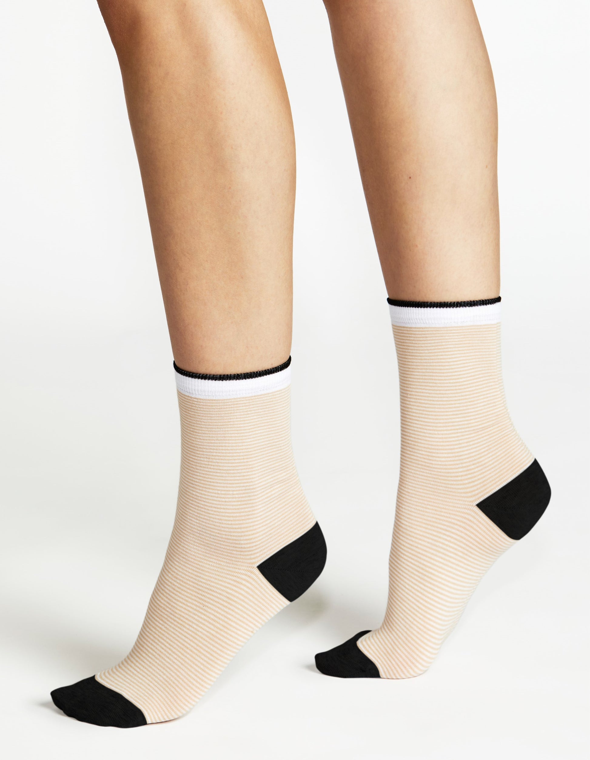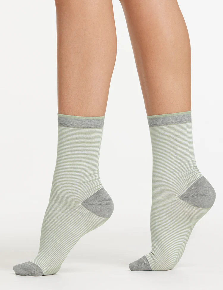 Levante's luxurious 'Lina Fine Stripe Crew Sock' are a fresh take on pattern socks, combining a fine stripe pattern with ultra-soft combed cotton.
