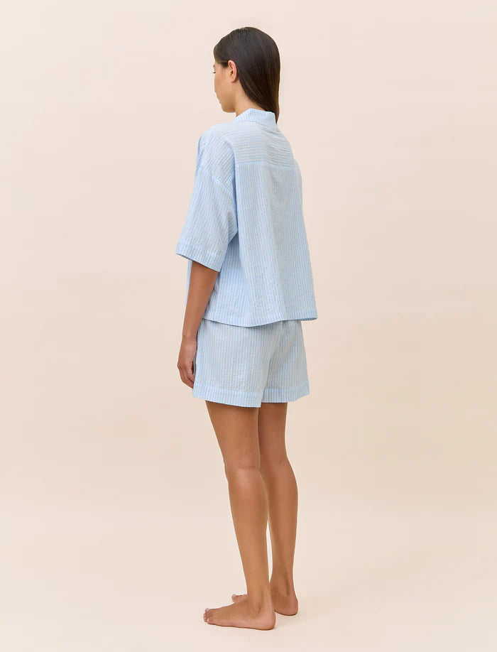 This seersucker boxer set is crafted from a luxurious blend of 50% Cotton and 50% certified Lenzing™ Ecovero™ Viscose. The lightweight seersucker fabric creates a soft drape against the skin, making it the perfect choice for the warmer months.
