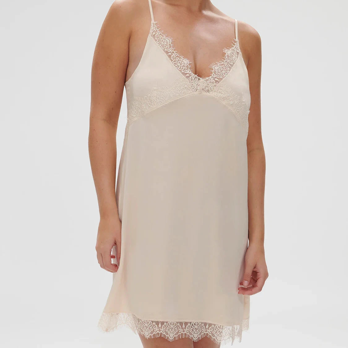 Featuring gorgeous scalloped lace detailing across the v-neckline and bodice, this vintage-inspired nightdress is crafted from a fluid satin fabric which drapes over curves and flatters every silhouette. Adjustable satin straps allow you to customise the fit of this short nightdress that will easily become your sleepwear go-to.