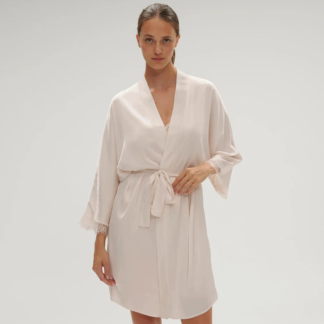 Sophistication meets chic style in the Satin Secrets Robe, a relaxed robe made for elevated all-day lounge wear. Featuring lace-trimmed kimono sleeves for unrestricted comfort, this buttery-soft satin robe – cut to mid-thigh length – will flatter every figure with its flowy drape.